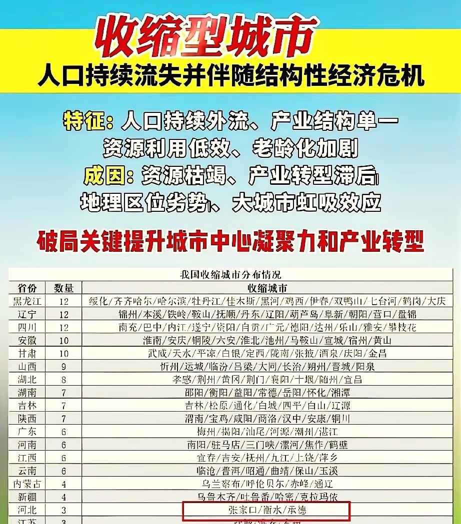 衡水上榜了,大家快来看看!这个消息看似有点小惊悚,但仔细琢磨,你可能会发现点儿有趣的小道理。从张家口、衡水、承德,到黑龙江、辽宁、四川,这些地方的城市名单还真不小气,一口气拢了十二个,个个打上了“收缩型”的标签。这意味着就是人少了,活力挫了。不过这份名单的“辣味儿”还真不小,嗦一嗓子,都觉得有点呛。